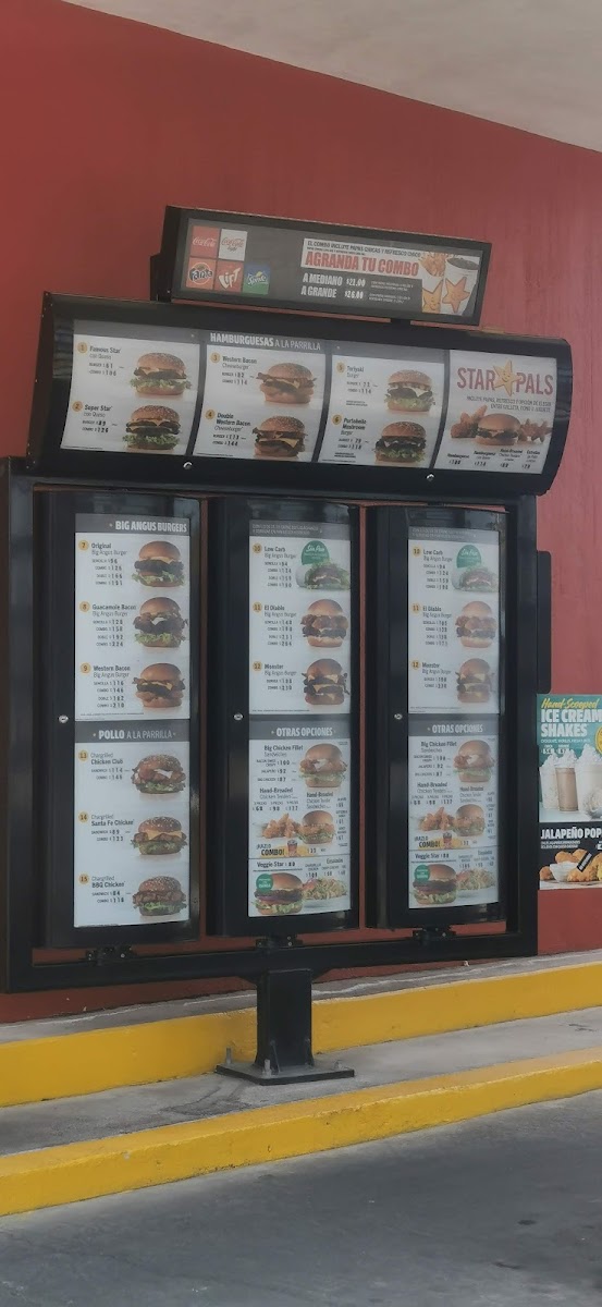 CARL'S JR., located in Villa de Álvarez, Mexico, offers a powerful lineup of hearty, flame-grilled burgers crafted from quality ingredients. The highlight is undoubtedly the Big Angus Burgers, featuring premium black Angus beef complemented by fresh vegetables and signature sauces. Standouts include the Original Big Angus with classic American cheese and the Portobello Mushroom Big Angus boasting sautéed mushrooms and Swiss cheese on freshly baked buns. The Western Bacon Big Angus adds a smoky twist with crispy bacon and BBQ flavors.